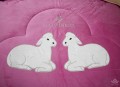 Chăn lông thêu hình thỏ màu be nhẹ nhàng
